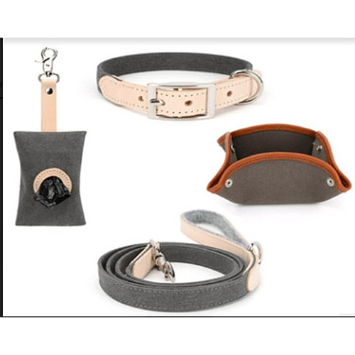 Canvas, leather head Collar L+ single head traction + folding bowl + poop picking bag(pink)- A2012 (L)