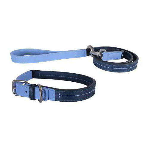 Baby Blue/Navy Leather Lead 3/4"40"